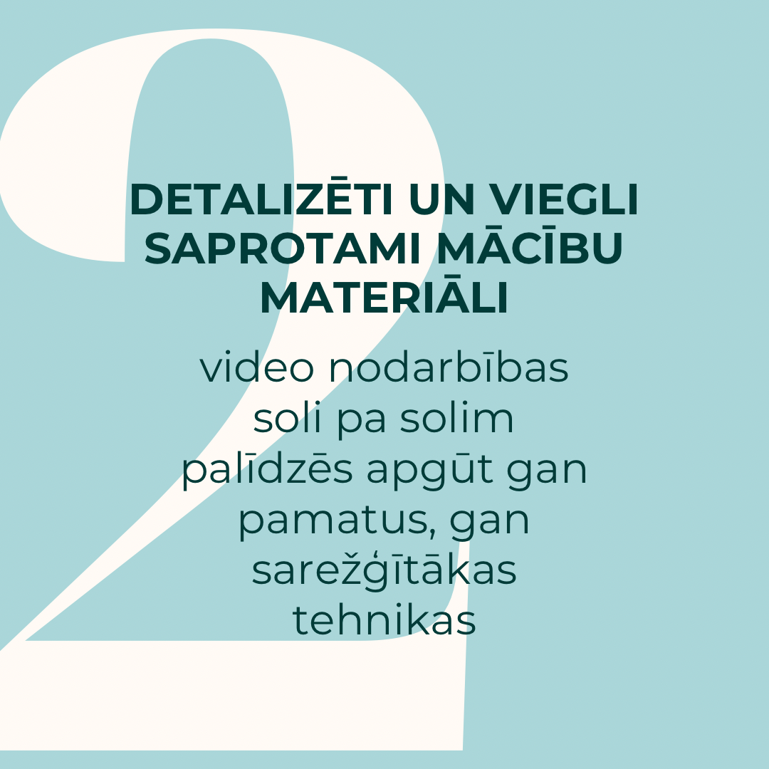 Katra nodarbība ir iepriekšsagatavots, ierakstīts video, tas nozīmē, ka vari to skatīties sev ērtā laikā, cik reižu vien nepieciešams.