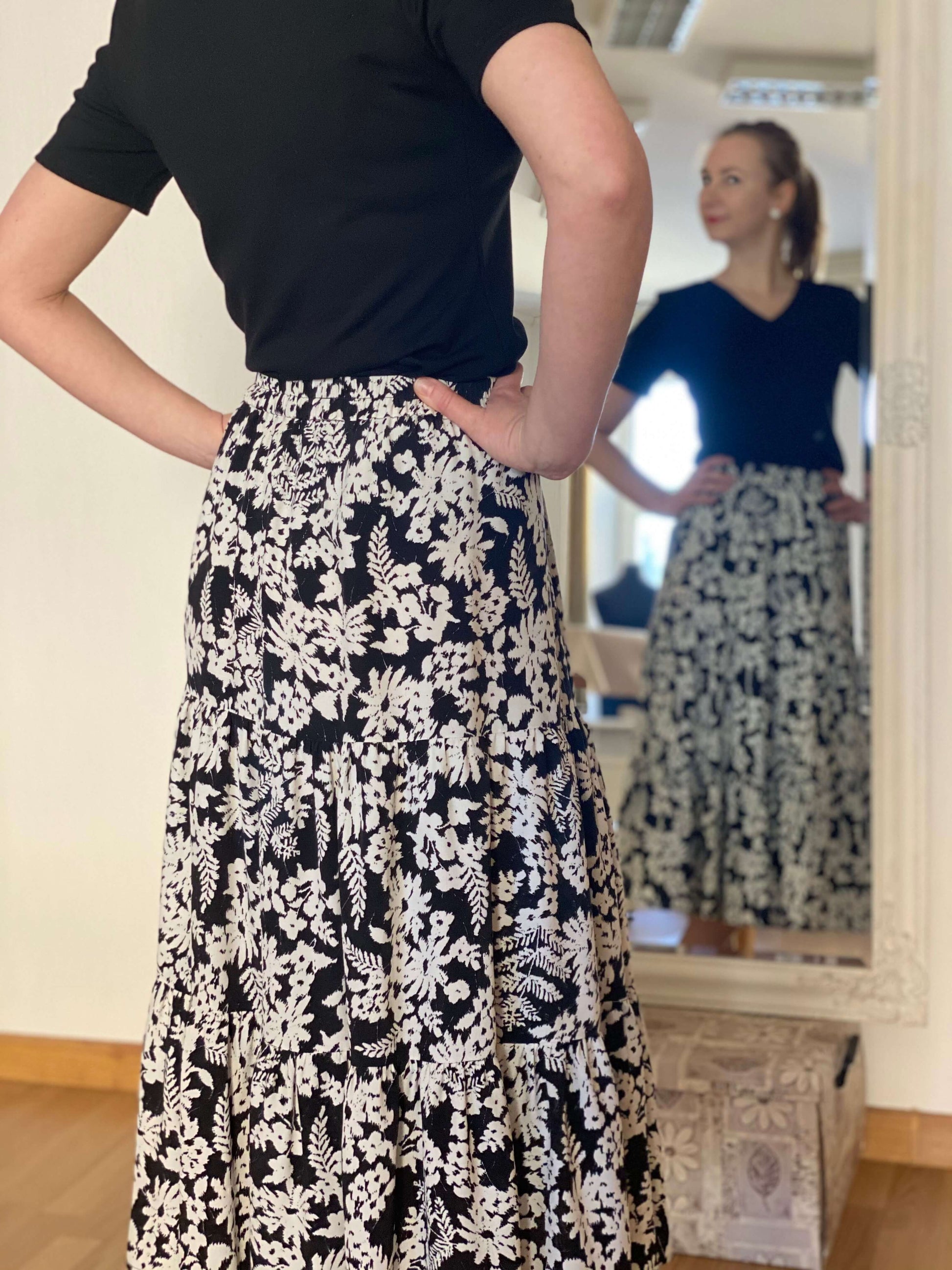 Volānsvārki ir perfekts vasaras garderobes papildinājums – viegli, plūstoši un romantiski. Trīs piekrunkoti slāņi piešķir tiem vieglu apjomu un dinamiku, komplimentējot sievietes augumam, padarot tos par lielisku izvēli gan ikdienai, gan svētkiem. Lina un viskozes audumi piešķir dabiskumu un elpojamību, savukārt mežģīnes – eleganci un smalkumu. Izvēlies savu audumu un radi savus unikālos svārkus!